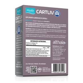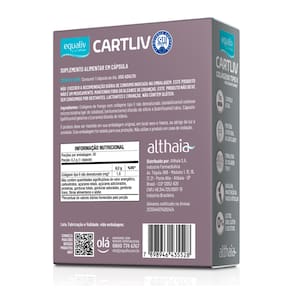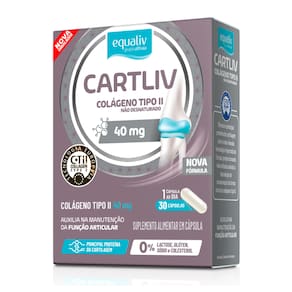 Equaliv CartLiv é um suplemento a base de colágeno tipo II não hidrolisado, que auxilia mantendo e restaurando a função das articulações. O consumo adequado de Equaliv CartLiv auxilia na manutenção do colágeno, mantendo e restaurando a função das articulações desgastadas por artrite reumatoide e osteodistrofia; atividades físicas repetitivas e prolongadas; sobrecarga nas articulações por excesso de peso, entre outros. Diversos estudos demonstraram que a ingestão diária de colágeno não hidrolisado beneficiou pacientes que apresentaram melhora da dor da articulação e mobilidade, permitindo a retomada das atividades do dia a dia.