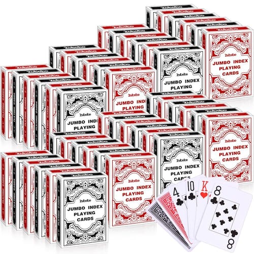 - Playing Cards Bulk: você receberá 48 baralhos gigantes de cartas de baralho, incluindo 24 baralhos de cartas pretas e 24 baralhos de cartas vermelhas.