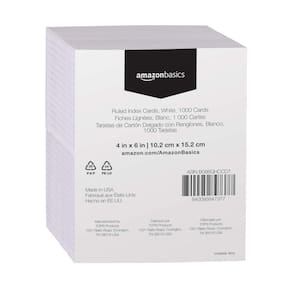 Amazon Basics Cartões pautados, 10 x 15 cm, branco, 1000 cartões - Branco: os cartões de índice brancos sólidos proporcionam uma aparência limpa e profissional - Pautado: linhas uniformemente espaçadas passam horizontalmente em um lado, promovendo uma nota mais fácil; em branco no verso - Versátil: use em casa, na sala de aula ou no escritório; ideal para cartões didáticos, notas de teste, pontos de apresentação de conversa, receitas e muito mais - Corte preciso: corte consistente no tamanho, o que permite que os cartões se empilhem bem juntos - Dimensões: cada cartão de índice mede 10 por 15 cm