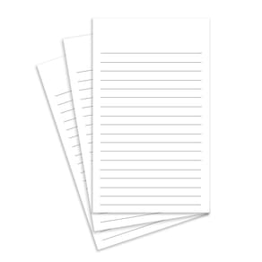 - Cartões impressos com linhas pautadas em cada lado, com orientação vertical. Ideal para listas, anotações, discussões, anotações para si mesmo, receitas, mensagens, instruções de escrita