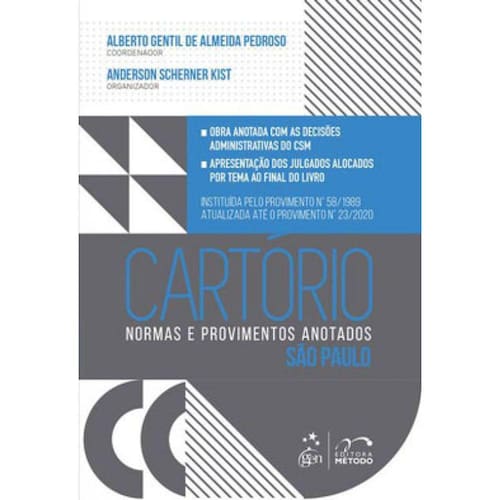 A obra objetiva, primordialmente, apresentar as Normas da Corregedoria-Geral da Justiça de São Paulo Anotadas – com leis, provimentos e decisões administrativas do Conselho Superior da Magistratura do Estado de São Paulo pertinentes a cada um dos temas.A sistematização e a compilação de leis e normas administrativas indispensáveis para o desenvolvimento da atividade extrajudicial, acompanhadas de inúmeros acórdãos do Conselho Superior da Magistratura, proporcionarão ao leitor – estudantes, advogados, juízes, promotores, registradores e tabeliães – uma rápida visão panorâmica do tema examinado.Como pontos de destaque, Cartório: Normas e Provimentos Anotados - São Paulo apresenta os julgados alocados por tema ao final do livro e está atualizada até o Provimento n° 23/2020.Na certeza de que a obra agradará o leitor na busca do conhecimento de maneira rápida e eficiente, deseja-se uma ótima leitura!? Ean: 9788530991739