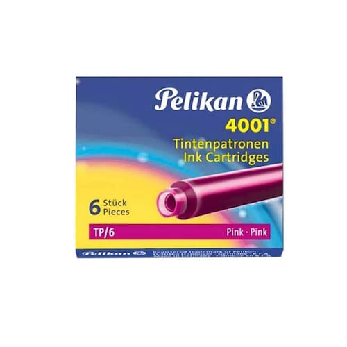 Os Cartuchos de tinta Pelikan 4001 TP/6 para canetas de tinta contêm uma fórmula de tinta que foi desenvolvida há mais de 125 anos. A tinta protege a caneta e a ponta e produz uma definição de linha clara com um fluxo uniforme. Feito na Alemanha, este cartucho de tinta é para uso com canetas de tinta Pelikan e muitas outras marcas usando cartuchos de tinta. 0,8 ml de tinta em cada cartucho.