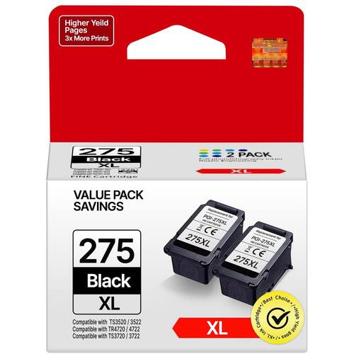 Substituição do cartucho de tinta 275XL para Canon 275 A tinta preta para Canon PG-275 O cartucho de tinta preta funciona com PIXMA TR4720 TR4722 TS3522 TS3722 TS3520, pacote com 2 - Impressoras compatíveis: cartuchos de tinta Wiseta 275xl para impressoras Canon PIXMA TR4700, TR4720, TR4722, TS3500, TS3520, TS3522 - Pacote Conteúdo: 2 cartuchos de tinta preta PG-275xl para cartuchos de tinta canon 275 e 276 - Alto rendimento de página: cartucho de tinta preta Wiseta XL pg-275 para cartucho de tinta preta canon 275xl de até 430 páginas por cartucho de tinta preta 275xl (com 5% de cobertura, papel A4) - Com chips atualizados: o conjunto de cartuchos de tinta 275 xl substitui o conjunto de cartuchos de tinta canon tr4720 equipado com os chips atualizados mais recentes para garantir a compatibilidade com suas impressoras - Cada um dos cartuchos de tinta 275xl 275 da WISETA para impressoras Canon oferece aos nossos clientes uma qualidade de impressão suave e alta