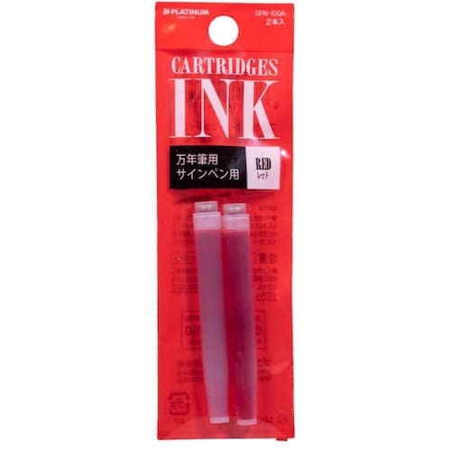 Cartucho de tinta caneta Tinteiro Platinum é fabricado no Japão com alta qualidade de tinta não tóxica e que poder ser Utilizado em qualquer caneta tinteiro compatível com o cartucho. São nove lindas cores que se destacam pelo seu brilho e cobertura. Possui boa resistência a água com qualidade de tinta de arquivo. Cartucho para Caneta Tinteiro Blister com 2 Unidades Diâmetro 7.0 mm Comprimento 5,8cm Fabricado no Japão Ean: 4977114940194