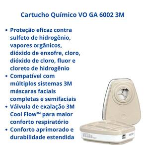 Cartucho Químico VO GA 6002 3M Proteção avançada contra gases ácidos e vapores perigosos O Cartucho Químico VO GA 6002 da 3M oferece filtragem eficiente de gases ácidos e vapores orgânicos, garantindo segurança em ambientes industriais e laboratoriais. Compatível com diversas máscaras 3M, proporciona conforto e durabilidade mesmo em condições adversas.