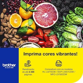 Utilizado nos equipamentos: HLL3210CW, DCPL3551CDW, MFCL3750CDW. Possui rendimento médio de 2.300 páginas, considerando 5% de cobertura no papel A4. Marca: Brother