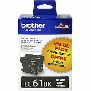 Brother LC61BK Pacote com 2 cartuchos de tinta pretos - Rende até 450 páginas por cartucho de acordo com a ISO/IEC 24711 - Tinta + papel Innobella = Qualidade Brother genuína - Gotas de tinta de 1,5pl (picolitro) - Suprimentos genuínos da Brother - Para uso com MFC290C, MFC490CW, MFC5490CN, MFC5890CN, MFC6490CW