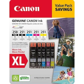 Tinta genuína Canon - Certifique-se de que é compatível. inserindo o número do seu modelo. - Cartuchos de tinta novos e selados de fábrica Canon PGI-250XL, CLI-251XL C/M/Y/K pacote econômico (5 cartuchos)