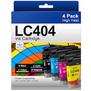 Cartuchos de tinta compatíveis com LC404 para Brother LC404 LC-404 LC404BK para uso com MFC-J1205W MFC-J1215W (pacote com 4, preto ciano magenta amarelo) - O pacote contém: Total de 4 cartuchos de tinta lc404 para impressora Brother, 1 LC404 preto, 1 ciano LC404, 1 magenta LC404, 1 amarelo LC404 - Rendimento de páginas: 750 páginas por cartucho de tinta preto lc404, 750 páginas por cartucho de tinta lc404 colorido (com cobertura de 5%) - Compatibilidade da impressora: cartucho de tinta lc404 para usar com impressora MFC-J1205W MFC-J1215W - Cartuchos de tinta LC404 compatíveis com cartucho de tinta brother lc404 com rigoroso controle de qualidade para garantir que seja compatível com a impressora - A tinta LC404 oferece um efeito de impressão claro e vibrante, o que dá a você um bom banquete visual
