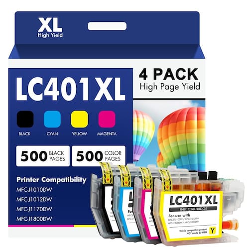 Cartuchos de tinta LC401 LC401XL MFC-J1010DW para impressora Brother LC 401 401XL para MFC-J1010DW MFC-J1170DW MFC-J1012DW MFC-J1800DW MFC J1010DW - 4 pacotes de alto rendimento preto ciano magenta amarelo - Conteúdo do pacote: Isprintime 4 pacotes LCC401XL Cartuchos de tinta 401 LC401XL para impressora Brother preto ciano magenta amarelo - Impressoras compatíveis: MFC-J1010DW MFC-J1012DW MFC-J1170DW MFC-J1800DW MFC-J1010 MFC-J1012 MFC-J1170 MFC-J1800 - Alto rendimento: alto rendimento de até 500 páginas por LCC Cartuchos de tinta preta e colorida 401XL (5% de cobertura e tamanho de papel A4)