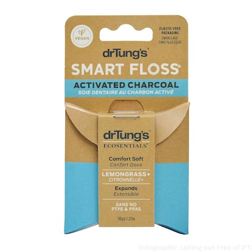 - REVESTIMENTO À BASE DE PLANTAS - Naturalmente livre de alérgenos e livre de BPA, PTFE, PFAS e cera petroquímica. Nosso fio dental é feito com um revestimento natural de cera vegetal vegana