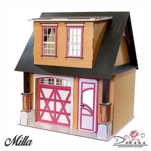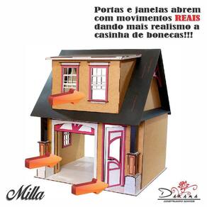 Casa de bonecas modelo milla - daramaUm dos nossos lançamentos de 2022, a casa de bonecas milla, tras um conceito mais compacto para casinhas de escala para bonecas de 30 cm de altura, ideal para pequenos espaços.A casa modelo milla possui dimensão total de 60 cm de comprimentos por 56 centimetros de profundidade, e 70 centimetros de altura, comportando bonecas de até 30 cm de altura como as da linha barbie e similares.Ela é composta por 2 cômodos amplos, sendo ambos de 35 cm de altura. Possui ainda uma varanda na parte frontal com espaçamento de 10 cm, ideal para que sua boneca possa circular tranquilamente na parte interna.As janelas e portas deste modelo são móveis, ou seja, as janelas e as portinhas abrem e fecham, dando mais realismo ao produto.Todo o produto é enviado desmontado, e para sua montagem disponibilizamos um manual ilustrativo. A montagem é feita através de encaixes e colagem precisa seguir o tutorial de montagem sendo um desafio para toda a família a construção desta linda casinha.A casinha milla está sendo comercializada em diversas versões, tanto coloridas, como em mdf natural.Características:Medidas: 60 x 56 x 70 centimetros largura x comprimento x altura Compatibilidade: bonecas de 30cm de altura tipo barbie e similares Obs imagens reais do produto.Obs: nao acompanha móveis,Homologação Inmetro: IP-BRI-2026/2018-05 Marca: Indústria Fenix
