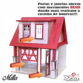 Casa de bonecas modelo milla - daramaUm dos nossos lançamentos de 2022, a casa de bonecas milla, tras um conceito mais compacto para casinhas de escala para bonecas de 30 cm de altura, ideal para pequenos espaços.A casa modelo milla possui dimensão total de 60 cm de comprimentos por 56 centimetros de profundidade, e 70 centimetros de altura, comportando bonecas de até 30 cm de altura como as da linha barbie e similares.Ela é composta por 2 cômodos amplos, sendo ambos de 35 cm de altura. Possui ainda uma varanda na parte frontal com espaçamento de 10 cm, ideal para que sua boneca possa circular tranquilamente na parte interna.As janelas e portas deste modelo são móveis, ou seja, as janelas e as portinhas abrem e fecham, dando mais realismo ao produto.Todo o produto é enviado desmontado, e para sua montagem disponibilizamos um manual ilustrativo. A montagem é feita através de encaixes e colagem precisa seguir o tutorial de montagem sendo um desafio para toda a família a construção desta linda casinha.A casinha milla está sendo comercializada em diversas versões, tanto coloridas, como em mdf natural.Características:Medidas: 60 x 56 x 70 centimetros largura x comprimento x altura Compatibilidade: bonecas de 30cm de altura tipo barbie e similares Obs imagens reais do produto.Obs: nao acompanha móveis,Homologação Inmetro: 6932/2021-BRI- 2 Marca: Indústria Fenix