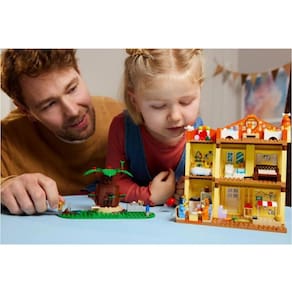 Casa da Família Bluey's Lego 11203 Dê vida à casa icônica de Bluey com o conjunto LEGO Bluey's Family House 11203 Este colorido kit de construção para crianças a partir de 4 anos recria a casa da adorada série de TV com cômodos detalhados, personagens familiares e muitos acessórios de brinquedo. A casa de brinquedo modular com vários cômodos possui espaços desmontáveis para infinitas possibilidades de configuração. As crianças podem explorar a sala de jogos com sua casa de bonecas, piano e barraca de comida; a cozinha com geladeira, forno e mesa de jantar; o quarto da mamãe e do papai; o banheiro; e o quarto de Bluey e Bingo no sótão completo com Chattermax. O conjunto inclui as quatro minifiguras da família - Bluey, Bingo, mamãe Chilli e papai Bandit - além do gnomo Jeremy e acessórios como a capa de arco-íris, bule de chá e comida de mentirinha. Um presente de aniversário especial para meninos e meninas e um deleite para os fãs de Bluey, este conjunto incentiva a narrativa imaginativa e a brincadeira criativa com personagens que as crianças conhecem e amam. Um bloco inicial grande, um modelo por embalagem, e instruções impressas ajudam os jovens construtores a estimular a imaginação enquanto ganham confiança em suas habilidades de construção. Contém 382 peças. Homologação Inmetro: 09238-25/2021 Marca: Não Informado