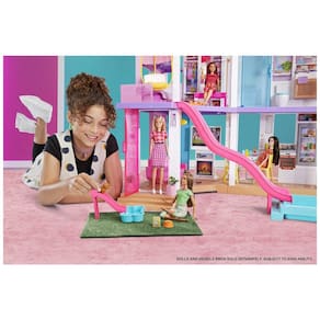 Medindo de altura e de largura, a Barbie DreamHouse totalmente mobiliada inspira imaginação sem fim com 10 áreas de recreação internas e externas, recursos personalizáveis e mais de 75 peças para contar histórias As características dos sonhos incluem um elevador funcional, salão de festas com cabine de DJ, toboágua no segundo andar com piscina, varanda com balanço de rede reposicionável e uma área de recreação para filhotes com sua própria piscina e toboágua. As personalizações permitem que as crianças criem sua própria casa dos sonhos a área de grama e a piscina podem ser colocadas em várias configurações no primeiro e terceiro andares, e o escorregador se encaixa em 4 locais exclusivos Defina o cenário para qualquer história com efeitos sonoros realistas, 2 paisagens sonoras, 3 músicas, 8 opções de cores claras e 4 configurações de luz, incluindo modo diurno, modo noturno, modo festa e iluminação ambiente. Uma varanda no terceiro andar e um deck na cobertura inspiram a vida ao ar livre traga todos para o andar de cima no elevador de trabalho que pode levantar e abaixar 4 bonecas ou uma boneca Barbie em cadeira de rodas Descubra momentos incríveis em cada andar com peças que se transformam, como um beliche que se dobra da parede, uma churrasqueira que se inverte para revelar um buffet de sobremesas e um centro de entretenimento que funciona como área para animais de estimação. Traga detalhes para a brincadeira com mais de 75 peças de narrativa com toques e texturas realistas, como cobertores macios, decoração moderna e grama macia ao toque Crianças de 3 anos ou mais podem se mudar para a Barbie DreamHouse e descobrir possibilidades de brincadeiras em todos os cômodos. Com opções personalizáveis e tantas áreas de jogo, eles nunca ficarão sem histórias para contar Marca: Não Informado
