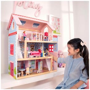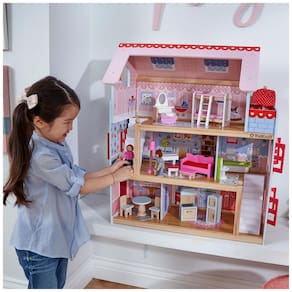 A casa de bonecas vem com 17 móveis impressionantes, permitindo que as crianças decorem e organizem os diferentes cômodos. Duas escadas de plástico moldadas facilitam o acesso aos diferentes níveis da casa. O espaço aberto em três níveis oferece muitas possibilidades de brincadeiras criativas.