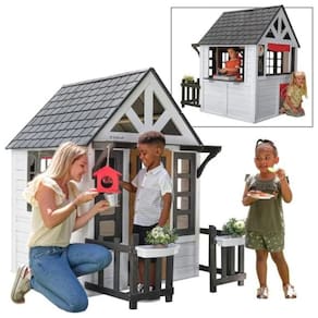 Transforme todos os dias no quintal em uma verdadeira experiência de férias com a Casa de Bonecas KidKraft Riverscape. Tanto as crianças quanto os pais vão adorar as vibrações relaxantes que emanam do jardim com cerca de piquete e alpendre. Feita de madeira, esta chalé pitoresca vai inspirá-lo a carregar os sacos de dormir e se mudar, pelo menos por um dia. Cultive flores ou ervas nas caixas de plantio na frente. Recepcione os amigos emplumados na casinha de pássaros pendurada, enchendo-a com sementes. E convide animais de estimação reais ou não para entrar pela divertida porta de vinil. Os convidados podem tocar a campainha e se juntar à diversão. Lá dentro, você encontrará uma pia, queimador e utensílios para preparar uma refeição caseira. A parte de trás da casa de bonecas possui uma janela espaçosa aberta com toldo de tecido coberto, sendo um local perfeito para servir alimentos ou fazer um teatro de marionetes. Lousas aguardam por arte inspirada pela natureza. Cada momento passado nesta adorável casa de bonecas deve ser celebrado. Decore-a com balões ou outras decorações para combinar com as estações do ano, tornando-a um espaço de entretenimento durante todo o ano. Com uma construção durável, telhado de plástico de manutenção fácil e mancha à prova de intempéries, haverá muitas excursões à Casa de Bonecas Riverscape no futuro.