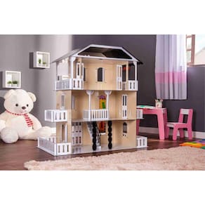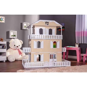 Casa de bonecas escala barbie estilo suzan Crem Confeccionada em mdf de 3 mm,a casinha de bonecas é composta por diversas peças,as quais se encaixam sutilmente devido a precisão de corte dos mesmos. Não acompanha móveis.Dimensões aprox :70 x 125 x 120cm largura x comprimento x altura Neste produto, há necessidade de colagem. O produto é montado através de feixes de encaixes, e necessariamente precisa ser colado com cola instantânea tipo superbonder, ou cascorez, cola branca ou qualquer cola indicada para mdf. Não indicamos cola quente.Material de fabricação: mdf de reflorestamento 3mm tipo pinus, cortadoatravés da tecnologia de corte a laser.- mais leve e prático de ser locomovido.- maior praticidade na montagem.- maior durabilidade.- maior precisão nos encaixes.Enviamos o produto desmontado e embalado em plástico bolha,garantindo que chegue em perfeito estado em sua residência.Comprando conosco, você também tem a garantia total do produto. Caso haja danos durante o transporte, na montagem, ou na utilização do mesmo, enviaremos sem nenhum custo adicional as peças de reposição para seu produto.Todas as informações divulgadas são de responsabilidade do fabricante/fornecedor.Imagens meramente ilustrativas.Observe atentamente a idade recomendada para o brinquedo. Pode conter partes pequenas que podem ser engolidas e perigosas.Indicado para crianças à partir de 5 anos. Produto artesanal.Características do produto:- tamanho: 70 x 125 x 120 cm- espessura do material: mdf3mm com pintura- compatibilidade: bonecas tipo barbieHomologação Inmetro: APTA-BRI-0025/21