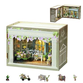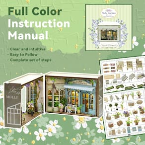 - Casa de bonecas de alta qualidade. Nossa mini casa de bonecas DIY é bem feita com escala de 1:100. Os materiais são ecológicos e não tóxicos. Vem com manual de instruções transparente, movimento mecânico, capa contra poeira e inclui um pacote de luzes LED. Feito de madeira, tecido, plástico e papel de alta qualidade, é seguro para crianças.