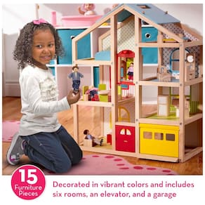 A casa de bonecas HiRise da Melissa Doug é perfeita para todas as bonecas em escala 1:12. Com seis quartos, um elevador e uma garagem, esta casa moderna é decorada com cores vibrantes e padrões frescos que adicionam um toque animado à moldura de madeira natural. As laterais abertas facilitam o acesso a todos os cômodos, permitindo que irmãos, irmãs e amigos compartilhem a diversão. O conjunto vem com três bonecos e 15 peças de mobília, e é feito de materiais resistentes e de alta qualidade que podem resistir ao uso frequente e às brincadeiras diárias. A casa de bonecas requer alguma montagem de um adulto e Pesa 8,57 Quilos. É um ótimo presente para crianças de 3 a 6 anos. A Melissa Doug tem sido líder na criação de produtos lindamente projetados que estimulam a imaginação e a criatividade por mais de 30 anos. A empresa tem orgulho de fazer parceria com a Academia Americana de Pediatria para promover o desenvolvimento inicial do cérebro e ajudar as crianças a desenvolver habilidades importantes para a vida por meio de brincadeiras.