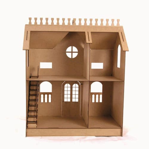 Confeccionada em mdf de 3 mm,a casinha de bonecas é composta por diversas peças,as quais se encaixam sutilmente devido a precisão de corte dos mesmos. Não acompanha móveis.