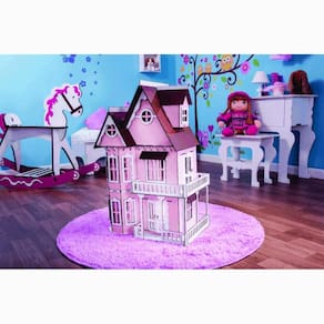 Confeccionada em mdf de 3 mm,a casinha de bonecas é composta por diversas peças,as quais se encaixam sutilmente devido a precisão de corte dos mesmos. Não acompanha móveis.