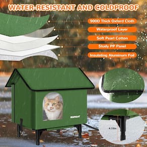REAPALOT Casa de gato aquecida para gatos externos no inverno, abrigo isolado para gatos selvagens ao ar livre com almofada de aquecimento para gatos, casa de gatinho aquecida elevada, 100% à prova d'água e à prova de vento - CASA DE GATOS AQUECIDA AO AR LIVRE: A casa de gato aquecida com isolamento externo com almofada térmica para gatos testada por UL mantém seus gatinhos internos e externos aquecidos e confortáveis no inverno frio. Perfeito para garagens, varandas, celeiros ou qualquer parte fria da casa - À prova d'água e à prova de vento: a casa aquecida para gatos é feita de tecido oxford 900D com revestimento de camada à prova d'água, o teto inclinado drena melhor do que os planos, a base elevada o mantém longe do chão frio, fornecendo ao abrigo externo aquecido para gatos excelente desempenho à prova d'água e à prova de umidade. As estacas podem ser inseridas no chão com 16 cm de profundidade para evitar efetivamente o sopro - 100% isolado e estrutural: há folha de alumínio isolante dentro da cama de gato aquecida à prova de intempéries para o inverno em toda parte, fornece calor duradouro para gatos selvagens no inverno. A estrutura de 5 camadas e a placa de plástico PP premium tornam a casa resistente e difícil de desmoronar - Fácil de montar e limpar: monta facilmente sem ferramentas. O teto pode ser aberto para limpeza diária ou entreter gatos. A capa de flanela do tapete de aquecimento é removível para lavagem na máquina - Núcleo de aquecimento de alta qualidade: todos os eletrônicos são estritamente selados por dentro e o tapete de aquecimento para animais de estimação foi testado e certificado com segurança, termostato embutido e suporta proteção contra superaquecimento, garante um calor seguro e confiável para seus gatos