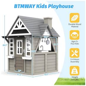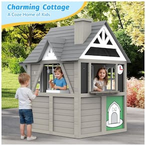 Desfrute de uma bela casa de brincar infantil, feita de madeira de cedro natural premium que garante durabilidade e resistência ao tempo. Com texturas e design únicos que iluminam o seu quintal, esta casa é naturalmente resistente à decomposição, insetos e climas severos. Sua estrutura de madeira resistente garante segurança por muito tempo. Cada borda é cuidadosamente lixada para suavidade, e os acessórios de plástico ABS e PP são livres de substâncias tóxicas, atendendo aos rigorosos padrões de segurança infantil. Estimule a criatividade com a cozinha de brinquedo realista, equipada com pia, fogão e acessórios para aventuras culinárias imaginárias. Uma campainha funcional convida os amigos para 'visitas', enquanto o design aberto incentiva cenários de faz de conta, como festas de chá. Observe as crianças desenvolverem habilidades de contar histórias e confiança social através de diversão interativa sem fim. Projetada para refletir interações da vida real, esta casa de brincar inclui uma campainha funcional, porta articulada e suportes para vasos de flores nas janelas. As crianças praticam cooperação e compartilhamento ao se revezarem sendo 'anfitriãs' ou 'clientes', enquanto os encontros de brincadeiras colaborativas fortalecem habilidades de comunicação e crescimento emocional num ambiente alegre. Dimensões generosas de 110 x 105 x 168 centímetros acomodam confortavelmente até 4-6 crianças. O interior espaçoso promove o trabalho em equipe por meio de atividades em grupo, enquanto a estrutura resistente se adapta a uso interno ou externo. Seja fingindo administrar um restaurante ou encenando teatrinhos, este espaço nutre a criatividade e amizades duradouras. Montagem fácil entre pais e filhos, com painéis pré-cortados e furos pré-perfurados que simplificam o processo. Instruções claras passo a passo permitem que as famílias se unam durante aproximadamente 56 horas de montagem colaborativa, um projeto gratificante que ensina paciência e resolução de problemas. As crianças também experimentarão a alegria de construir durante esse tempo.
