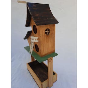 Casa De Passarinho Com ComedouroCasa para passarinho silvestre: produto produzido artesanalmente em madeira de reflorestamento pinus, para ser colocado em árvores e jardins para atrair e alimentar pássaros, além de decorar a parte externa da casa.Características: - Em madeira pinus envernizada. - Pintura em verniz resistente a chuva e sol.- Com suporte para fixação em árvore ou varabda. - Cor envernizada. - Medidas: 0,15 x 0,52 x 0,30 cm Marca: Jw Artesanato Em Madeira