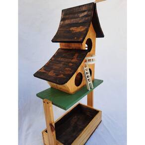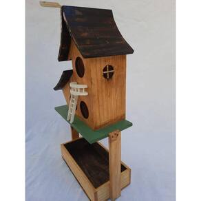 Casa De Passarinho Com Comedouro Casa para passarinho silvestre: produto produzido artesanalmente em madeira de reflorestamento pinus, para ser colocado em árvores e jardins para atrair e alimentar pássaros, além de decorar a parte externa da casa. Características: - Em madeira pinus envernizada. - Pintura em verniz resistente a chuva e sol. - Com suporte para fixação em árvore ou varabda. - Cor envernizada. - Medidas: 0,15 x 0,52 x 0,30 cm Marca: Jw Artesanato Em Madeira Ean: 2960006704259
