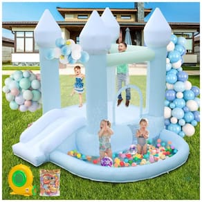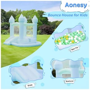 Certificada como segura e durável, esta casa de pula-pula inflável possui um potente motor de 370W que oferece suporte consistente para a energia das crianças. Cercas protetoras são instaladas ao redor da área de pulo para evitar quedas. Você pode confiar em seus filhos neste sólido castelo enquanto desfruta de momentos especiais. Fácil de montar, a casa inflável pode ser configurada ou desinflada em 2 minutos. Com tamanho de 2,8x2,7x2,4 metros, é adequada para áreas internas e externas, permitindo que as crianças se divirtam o ano inteiro. A área de pulo espaçosa e a piscina de bolinhas proporcionam diferentes tipos de diversão. Além disso, o design elegante torna esta casa inflável uma opção encantadora para festas, reuniões familiares e ocasiões comerciais.