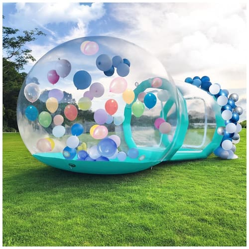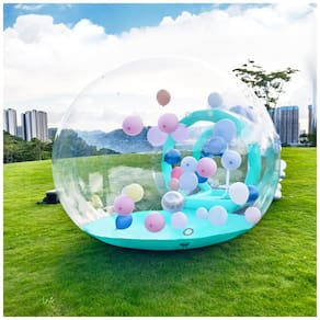 Construção Durável em PVC A casa de bolha é feita de material PVC de alta qualidade, antideslizante, resistente ao rasgo e hermético. O design transparente da Casa Inflável de Bolha Dome proporciona liberdade criativa tanto para ambientes internos quanto externos. Fácil de Transportar e Armazenar Esta tenda de bolha inflável pode ser esvaziada e dobrada quando não estiver em uso, facilitando o armazenamento sem ocupar muito espaço. Além disso, o material leve permite transportá-la facilmente para onde precisar. Fácil de Montar A instalação da bolha inflável é muito simples, basta retirar a tenda de bolha, conectar o secador de cabelo, clicar para inflar, puxar na saída de ar e, em seguida, fixá-la na posição desejada para completar a montagem. Leva apenas 5 minutos para inflar e mantém-se cheia durante todo o evento quando ligada. Estimule a Atividade Física Horas de diversão, evite áreas com objetos pontiagudos e detritos antes da montagem. As crianças devem remover sapatos, cintos, joias, relógios, chaves, grampos de cabelo e todos os outros objetos pontiagudos, sendo o lugar perfeito para seus filhos queimarem toda a energia extra. Aplicação Ampla Ótimo design na casa de bolha, adequado para casamentos, aniversários, Natal, atividades ao ar livre, festas, encontros, exposições, para adultos e crianças brincarem e tirarem fotos juntos em seu interior.