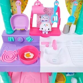 Se sinta na cozinha do Cakey Cat assim como na série! A cozinha é super simples de montar sozinho ou com a ajuda de um adulto, então a diversão pode começar super rápido. Arrume a sua cozinha como você quiser e depois de colocar as baterias e ligue-a para poder brincar na cozinha do Cakey! Aperte o botão no suporte do Cakey e gire os botões do fogão para ativar mais de 20 sons e frases! Você pode escutar 3 músicas, 11 frases do Cakey Cat e 9 sons da cozinha iguais ao da série! A cozinha até parece de verdade, tendo um fogão, uma pia com escorredor de pratos, 10 acessórios de cozinha, 9 peças de comida para brincar e até uma geladeira com fotos da Gabby e seus amigos. A Cozinha do Cakey é perfeita para enriquecer as brincadeiras das crianças que amam o desenho da Gabby?s Dollhouse!CONTEÚDO DA EMBALAGEM:1 Cakey, 1 um fogão1 pia com escorredor de pratos10 acessórios de cozinha9 peças de comida para brincar1 geladeira com fotos da Gabby e seus amigosESPECIFICAÇÕESCódigo de Barras: 7899573636319Fornecedor: SunnyIdade recomendada: A partir de 3 anosFuncionalidade: Estimular a criatividade, a imaginação, o carinho e o afetoAviso: As cores podem variar entre as imagens mostradas acima e o produto. Imagens meramente ilustrativas.Certificado: Certificado pelos Órgãos Autorizados - OCP'S (Organismos de Certificação de Produtos)