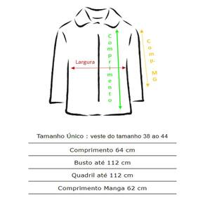 Medidas: Comprimento 64 cm / Busto 112 cm / Quadril 112 cm / Comprimento Manga 62 cm