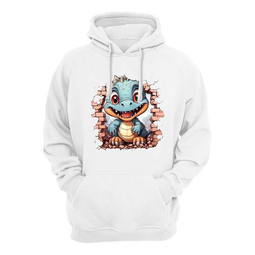 Casaco Moletom Canguru Com Capuz Masculino Estampa Dinossauro Flanelado - Branco - M