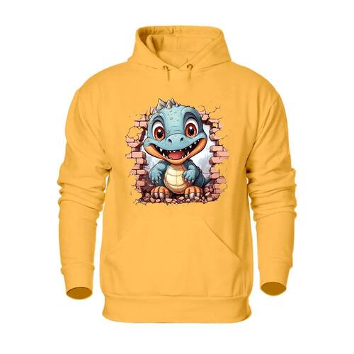 Casaco Moletom Canguru Com Capuz Masculino Estampa Dinossauro Flanelado - Amarelo - GG