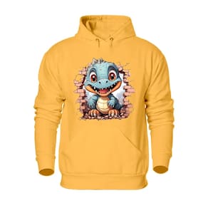 Casaco Moletom Plus Size Flanelado Canguru Com Capuz Masculino Estampa Dinossauro Tamanho Grande - Amarelo - G1