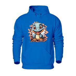 Casaco Moletom Plus Size Flanelado Canguru Com Capuz Masculino Estampa Dinossauro Tamanho Grande - Azul Royal - G2