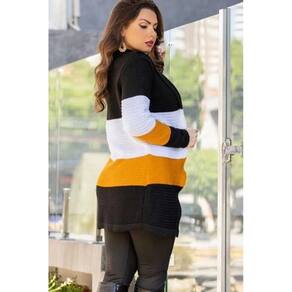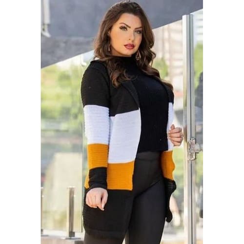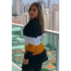 Manga 59cm\n Casaco Tricot Listrado Tricolor Casaco de tricot, manga longa, confeccionado em tricot tricolor. Perfeito para complementar looks e usar nos dias mais frios.