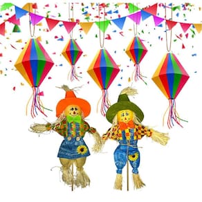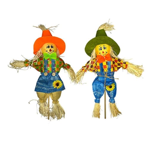 Especificações técnicas: - 2 espantalhos decorativos - altura: 47cm - fixado numa haste de madeira com altura total de 47cm espantalho + haste - composição: 02 espantalhos decorativos com base e milhos confeccionado em tnt e palha - conteúdo da embalagem - kit com 02 itens - cor: colorido