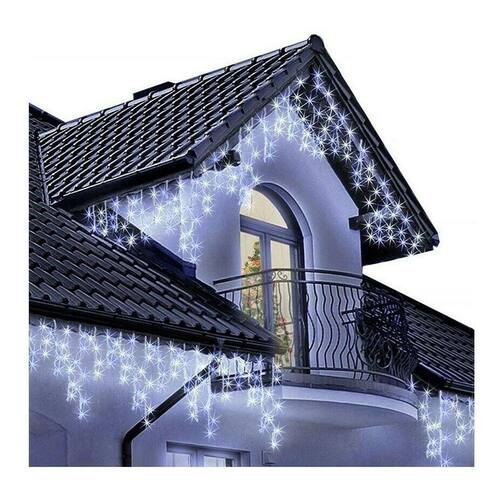 Cascata 400 Leds 10M C/ 8 Funções Branco Frio C/ Fio Branco