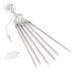 São 6 tubos com LED na cor Branco Frio que simulam uma Chuva de Neve. Eles podem ser fixados em árvores, janelas, portas, paredes, ou em qualquer ambiente coberto.