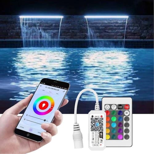 Cascata de Piscina 60cm de Embutir com Iluminação Led RGB e Controlador WiFi