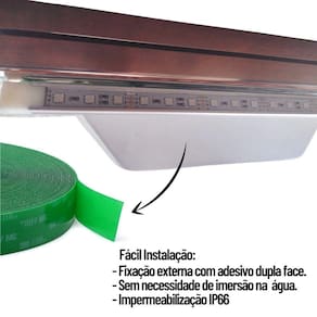 A barra de Led deve ser instalada na parte inferior do bico de Inox da cascata, o qual fica pocisionado para fora da parede.