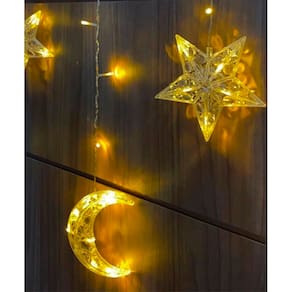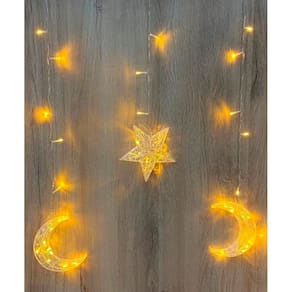 1 Cascata de Luzes de LEDs Decoração Estrelas E Luas Amarelo Com 3 Metros De Comprimento;