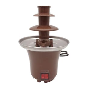 Cascata torre para chocolate quente Máquina castata de chocolate Excelente para eventos, casamentos, festas, batizados, etc. A fonte de chocolate com certeza será uma adição popular para sua próxima reunião. Os usuários vão se apaixonar por mergulhar suas guloseimas no chocolate esvoaçante para que possam desfrutar de suas deliciosas sobremesas. Fonte de fondue de chocolate de 3 camadas carrega chocolate branco ou marrom derretido da base ao topo da torre.Ele mantém o chocolate derretido com uma base aquecida que o mantém aquecido e fluindo.É o tamanho perfeito para pequenas reuniões e é um ótimo presente para os entusiastas do chocolate. Especificações: Material: plásticoCor: marromTamanho: 14,5x22cm / 5,71x8,66 polegadasDiâmetro: 8,5 / 6 / 3,5 cm 3,35 / 2,36 / 1,38 polegadas Tensão: 110v 50hz 65w Marca: Casca