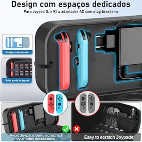 Fantástico case para guardar e transportar o Nintendo Switch OLED ou versão padrão V1/V2.