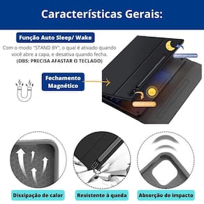 - com slot interno para pencil: Oferece uma solução prática de armazenamento, enquanto os ângulos de suporte ajustáveis permitem que você encontre a posição perfeita para trabalhar ou assistir a vídeos.