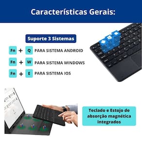 - suporta 3 sistemas: O teclado é compatível com 3 sistemas operacionais convencionais simultaneamente. Ios, windows e android.
