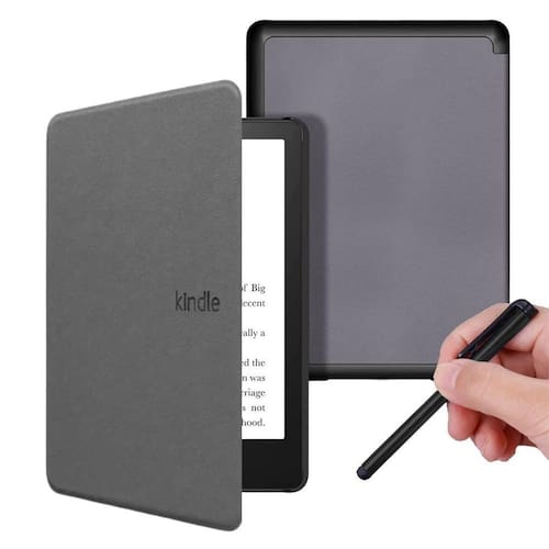 Case couro premium para kindle 12 básico 6.0 + caneta touch Cor: cinza com revestimento interno de microfibra e toque macio, sua tela estará sempre livre de riscos. O fechamento magnético é mais que um detalhe: ele aumenta a segurança, enquanto as bordas reforçadas garantem um encaixe perfeito e firme, prevenindo quedas e absorvendo impactos.